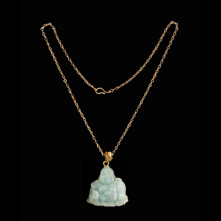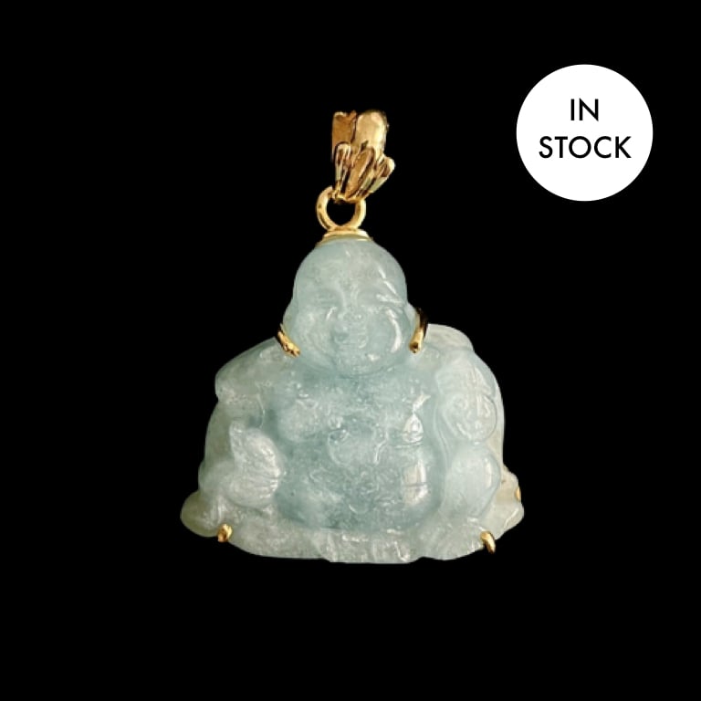 10K Aquamarine Guangdong Abundant Buddha Pendant