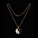 Incorporate balance and luck in your life with our mother-of-pearl and black jade Yin-Yang pendant.