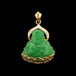 10 K Good Fortune Buddha Pendant With Crystal Halo (Partially Iced)