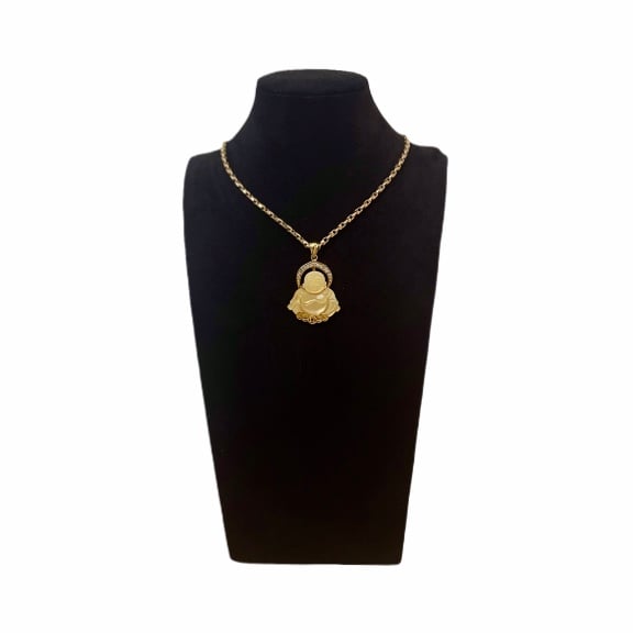 10K Cha'an Hong Laughing Buddha Pendant With Crystal Halo (Mother Of Pearl)