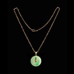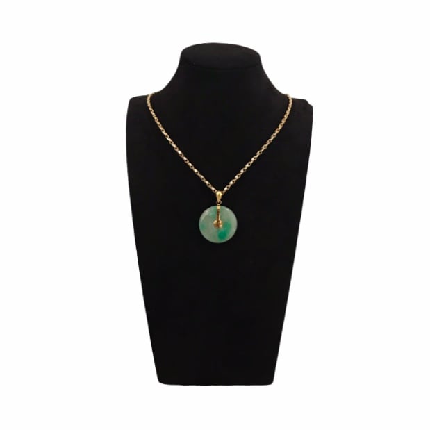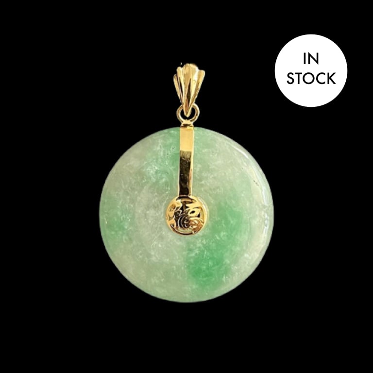 10K Fu Fuku Fortune Zhong Disc Pendant Marbled Jade