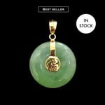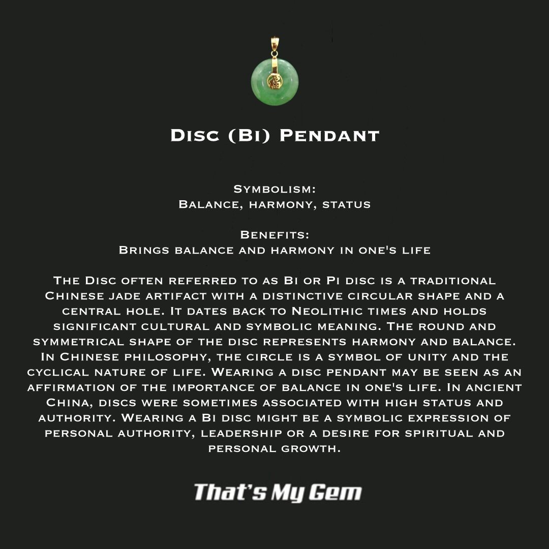 10K Fu Fuku Fortune Zhong Disc Pendant Strong Green Jade