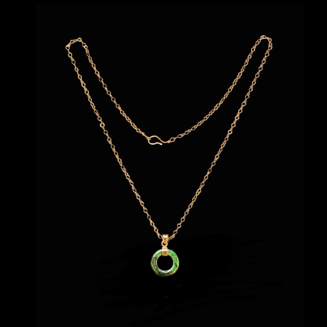 10K Mini Donut Pendant Dark Green Marbled Jade