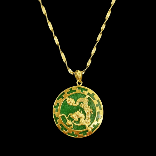 10 K Modern Kanji Dragon Circle Pendant