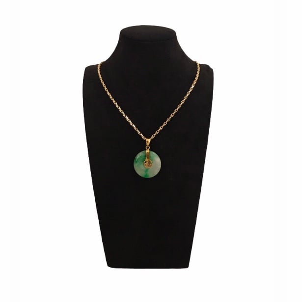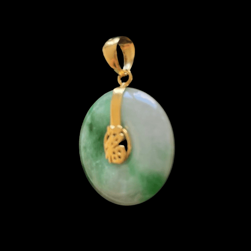 10K Premium Green And White Jade Disc Pendant Fu Fuku Fortune