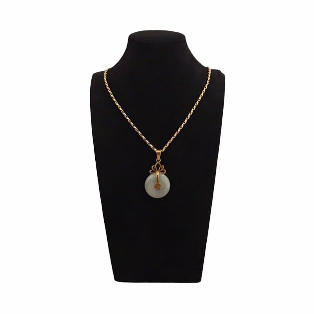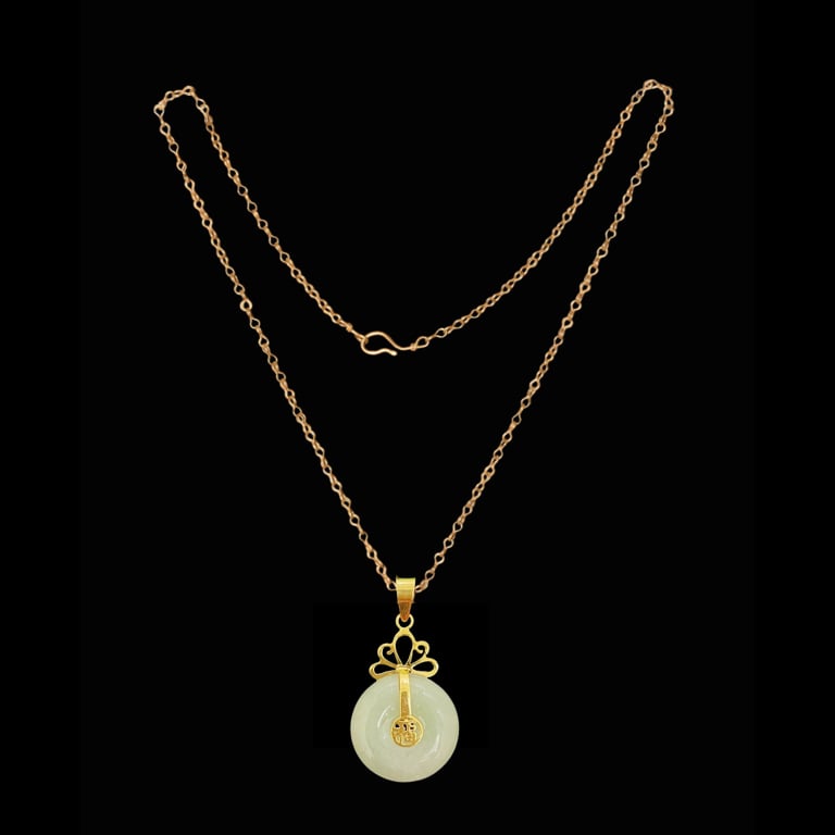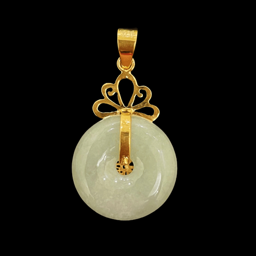 10K Gold Ribboned Fu Fuku Fortune Zhong Disc Pendant