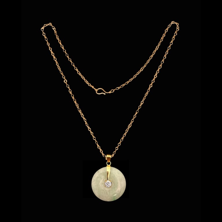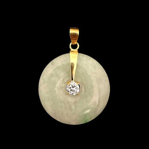10 K Big Disc Good Luck Pendant With Crystal Center
