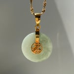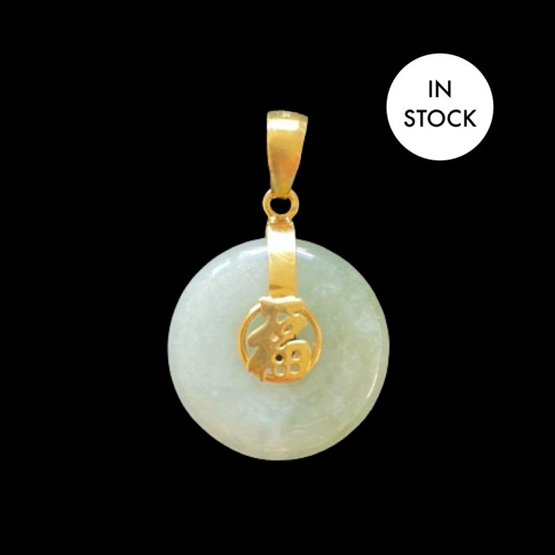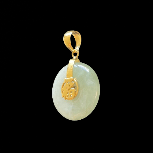 10K Grey Premium Jade Disc Pendant Fu Fuku Fortune Zhong