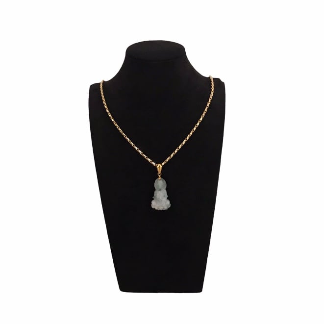The white jade represents purity, clarity, and peace, while the green inclusions bring in life force, abundance, and prosperity.