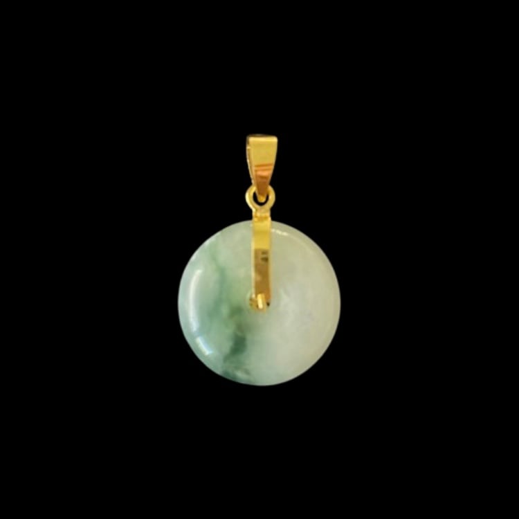 10K Moss In Snow Jade Mini Fu Fuku Fortune Zhong Disc Pendant