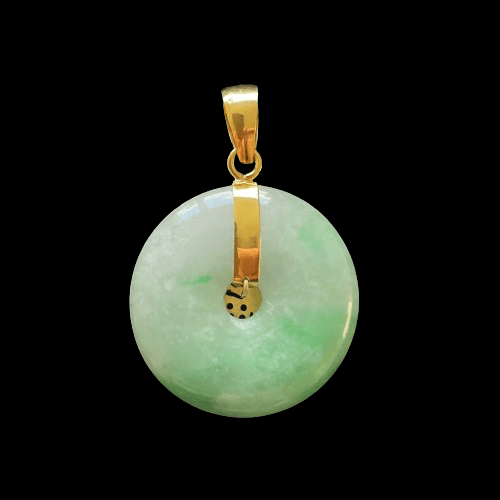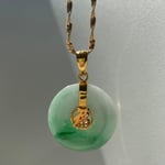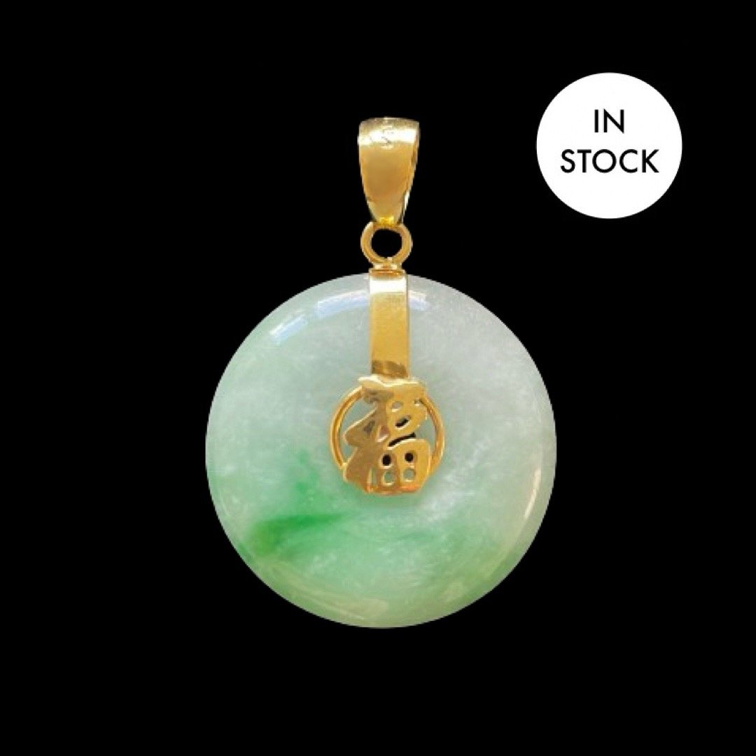 10K Premium Green And White Jade Disc Pendant Fu Fuku Fortune Zhong