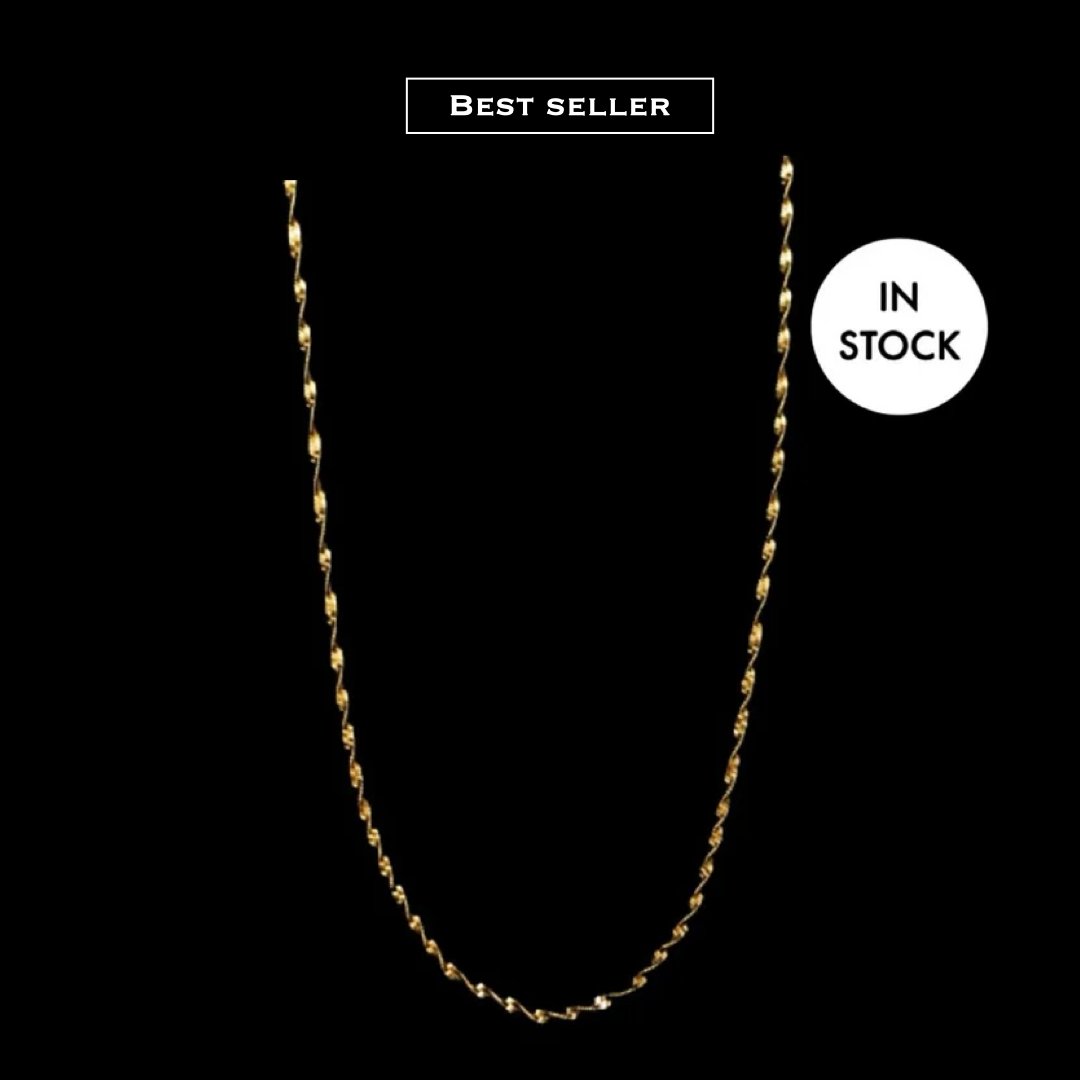 This sophisticated looking chain is similar to a rope. It consists of two thick strands twisted together and giving the appearance of a spiral. A rare find, an everlasting shine that cheap necklaces can not deliver. Each twisted pattern is cut with EXTREME precision.