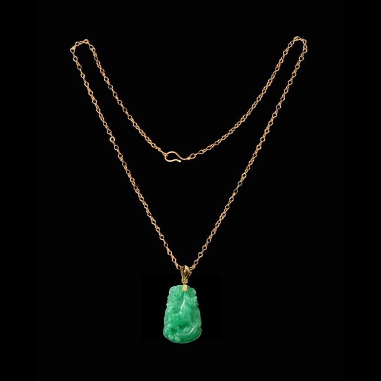 10 K Gold Dog Chinese Zodiac Green Jade Pendant