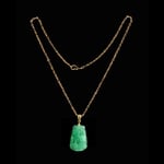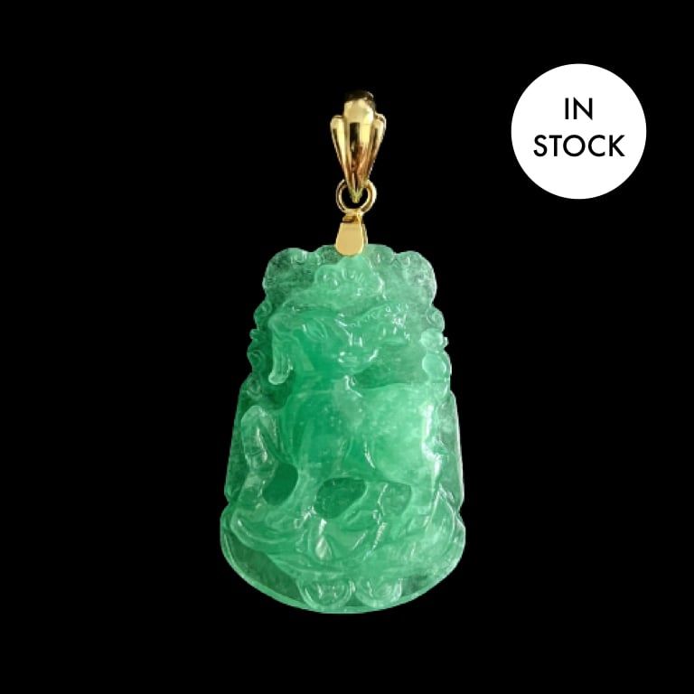 10 K Gold Goat Chinese Zodiac Green Jade Pendant