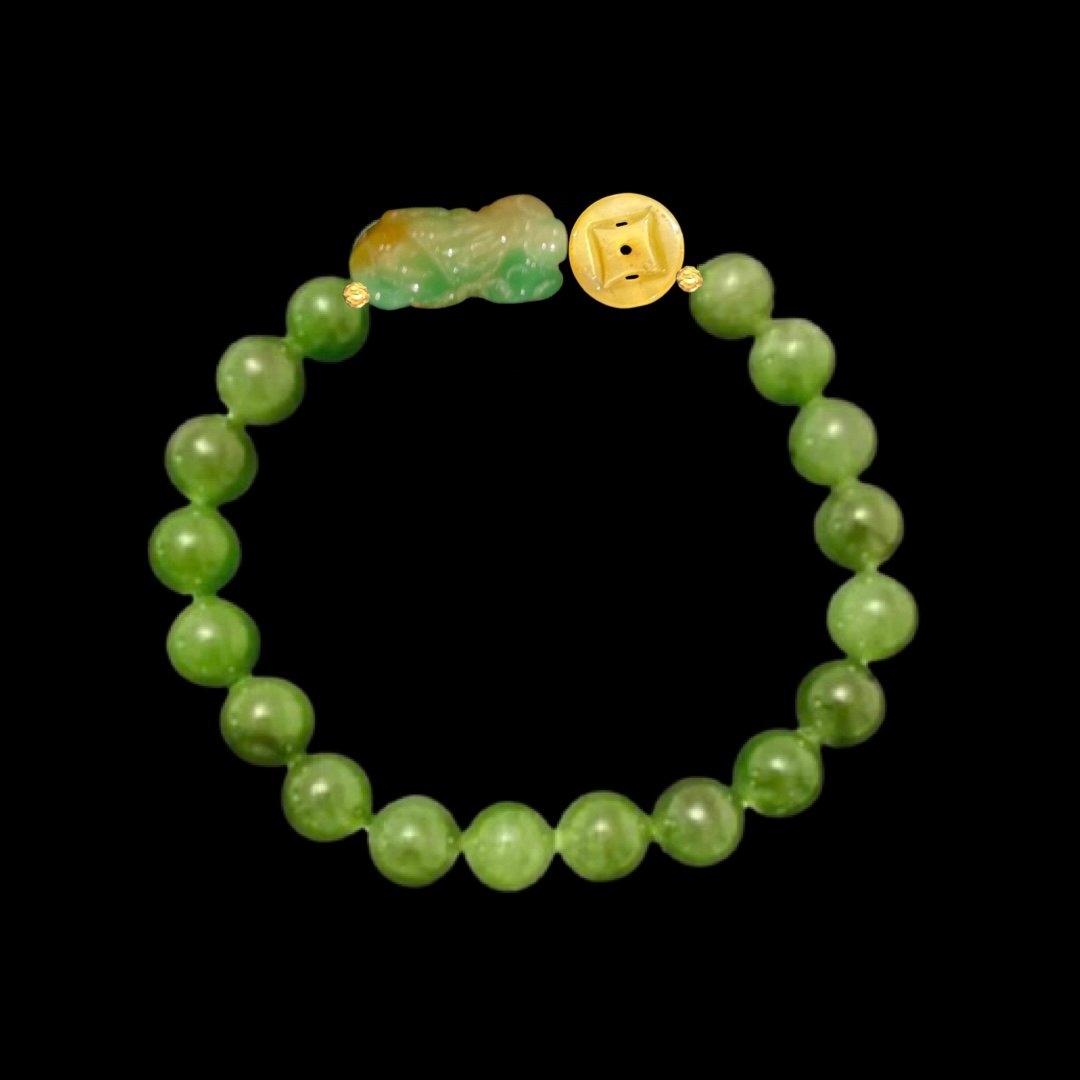 Green Jade Pixiu Coin Energy Bracelet (Abundance, Protection)