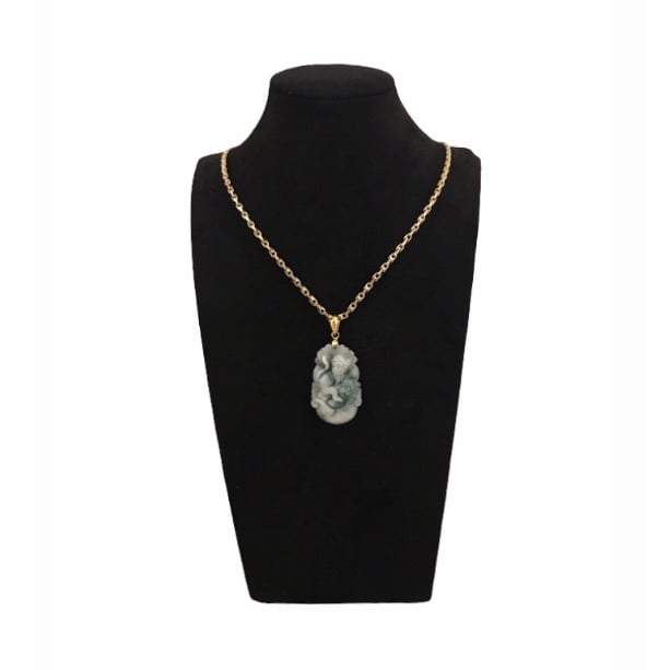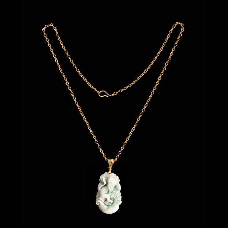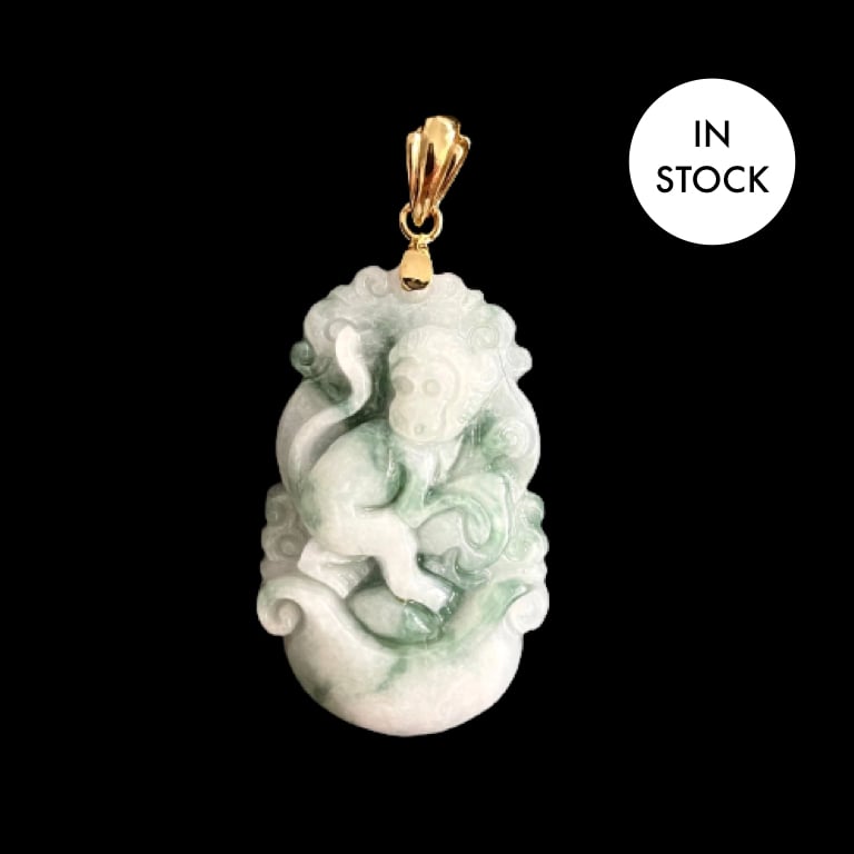 Monkey Chinese Zodiac Moss In Snow Jade Pendant
