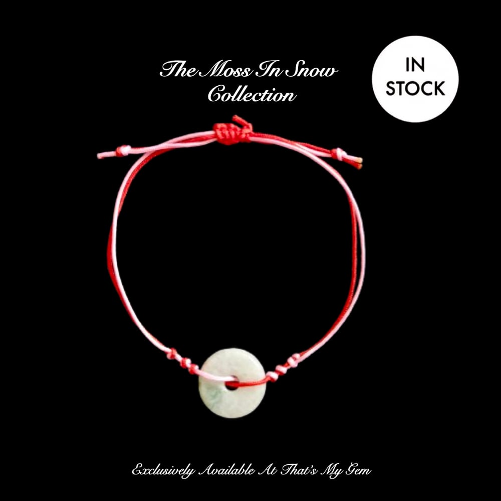 Moss In Snow Jade Bi Disc Red String Energy Bracelet (Harmony Of Opposites)