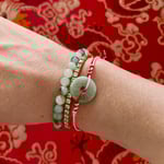 -Jade Bi Disc elegantly set in the middle of this silk bracelet