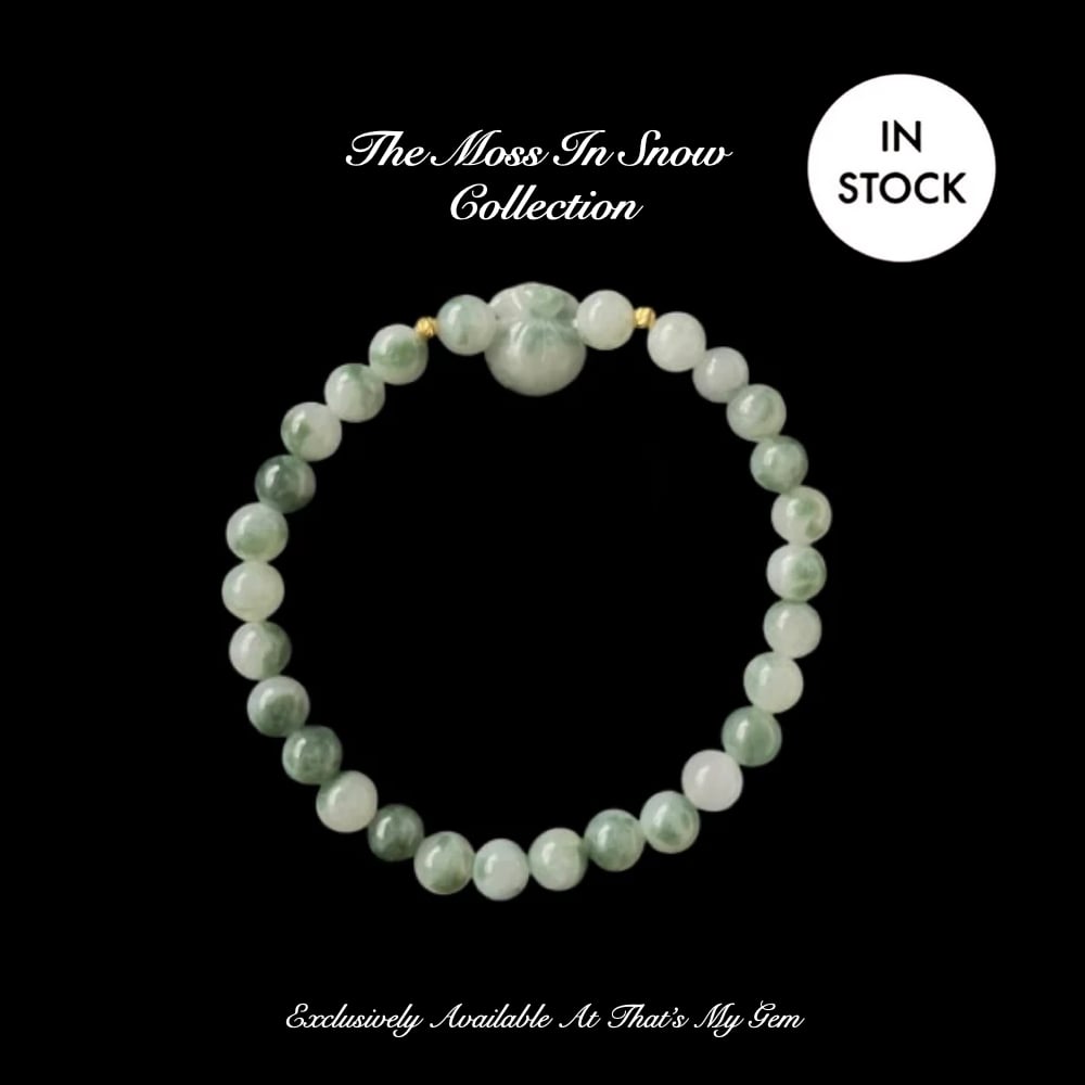 Moss in Snow Jade is a beautiful type of jade where white or translucent jade (the “snow”) is naturally patterned with deep green inclusions that resemble moss.