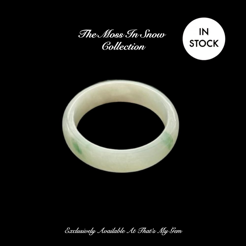 Moss in Snow Jade is a beautiful type of jade where white or translucent jade (the “snow”) is naturally patterned with deep green inclusions that resemble moss.