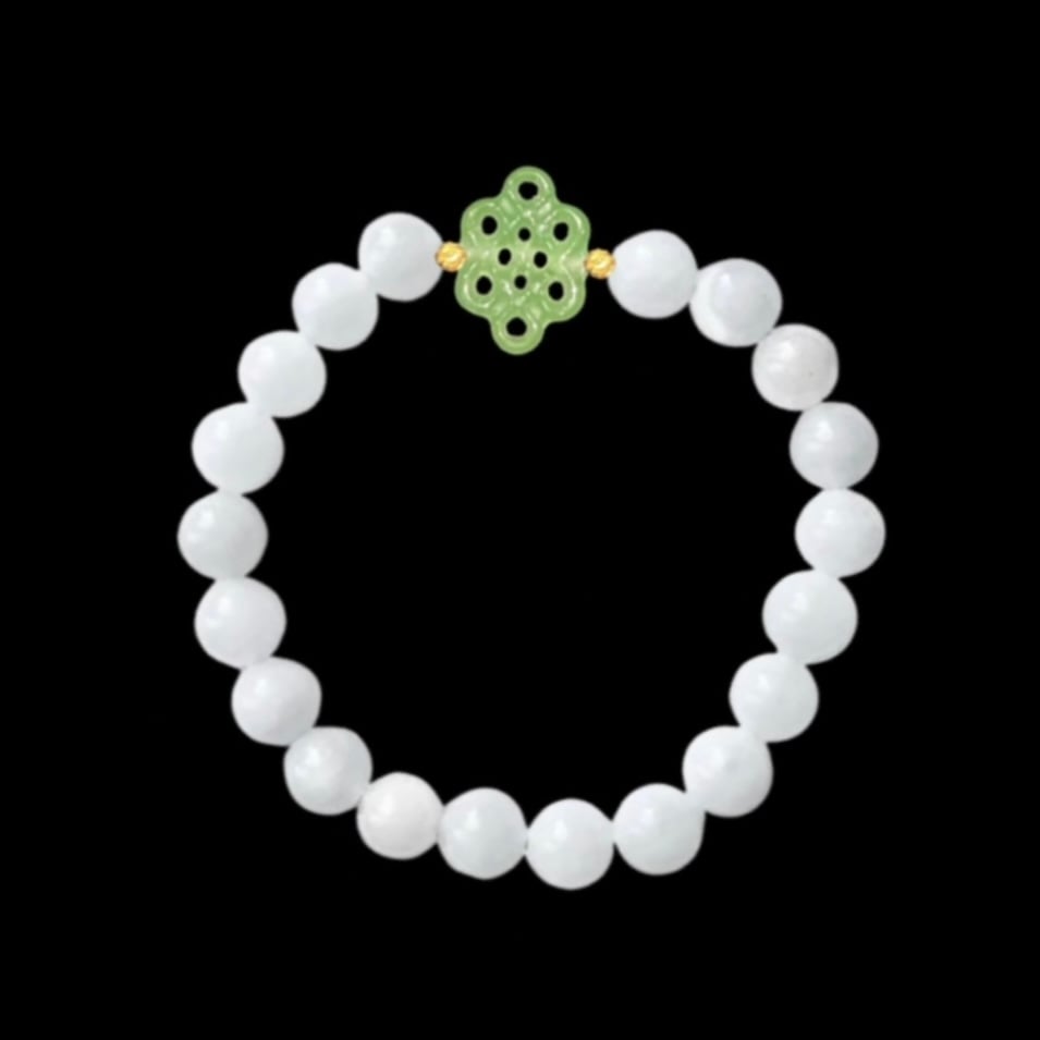 White Jade Energy Bracelet Endless Knot (Wisdom, Harmony, Spiritual Connection)